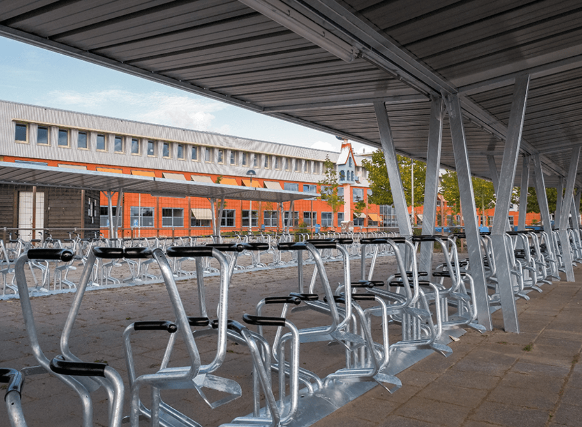 We offer both indoor and outdoor bike racks. An indoor bike rack is part of a covered bike parking facility, providing the best protection against weather conditions. Covered bike racks prevent wet saddles and keep bikes out of sight, reducing the risk of theft or vandalism. This has a positive impact on bike usage. Similarly, outdoor bike racks are accessible, visible, space-saving, and cost-effective, offering quick access to bikes.
