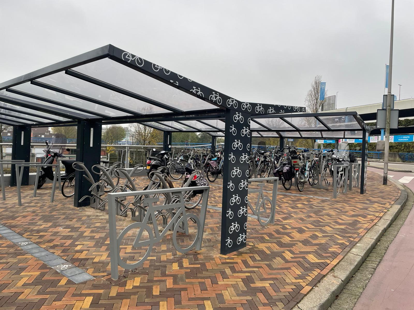 Commissioned by the Bunnik Groep, Klaver Bicycle Parking has installed T-Hide bicycle shelters at Stadshart Zoetermeer.