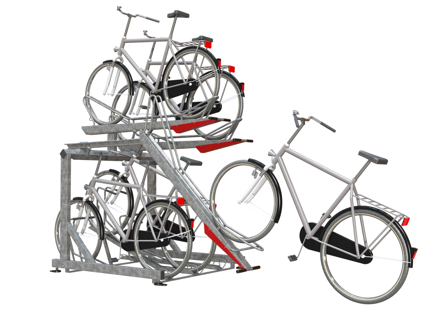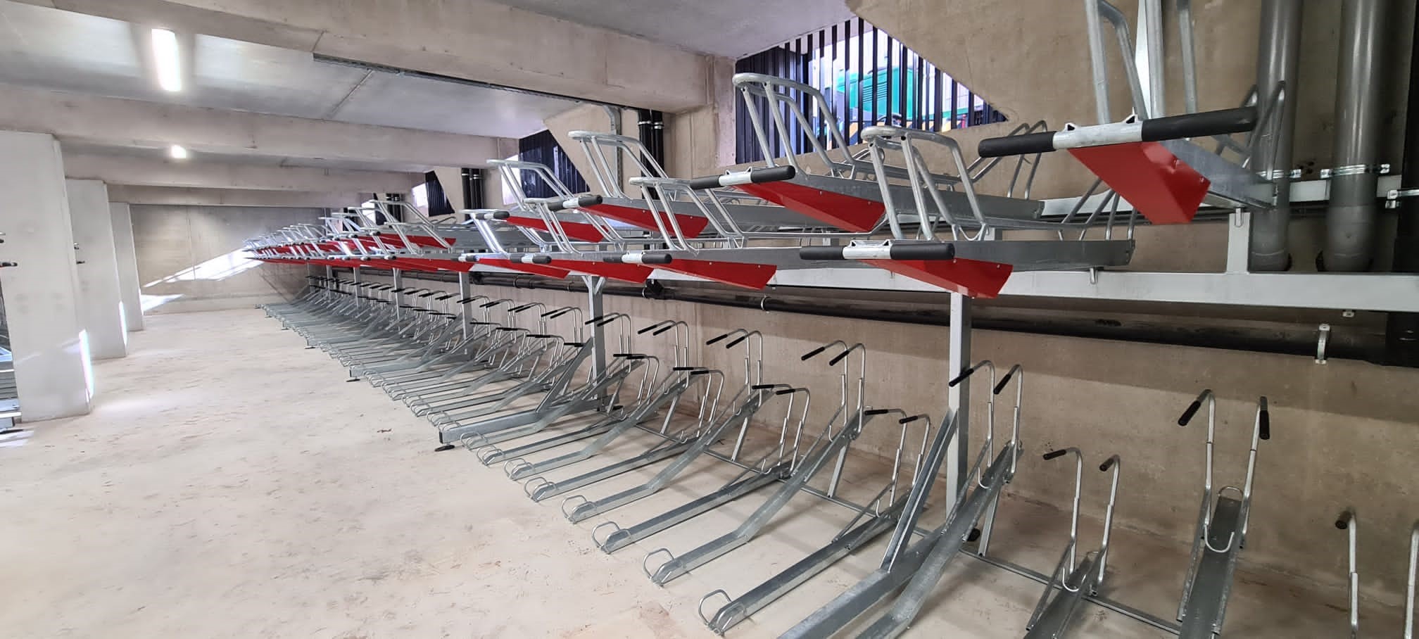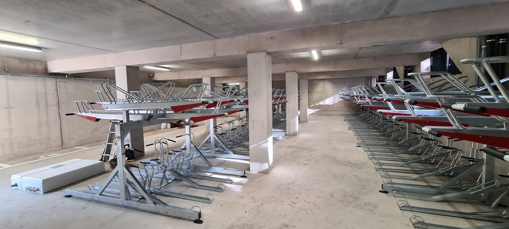 The bicycle parking facility is equipped with our double-decker bike rack, 2ParkUp, and has space for 244 bicycle parking spots. The double-decker racks offer a user-friendly solution to accommodate sufficient bicycles in locations with limited space. Additionally, special attention was given to accessibility and social safety in the design. The clear sightlines to the entrance of the bicycle parking facility provide a safe and pleasant feeling. The bike passage to the parking area is designed extra wide and well-protected against damage.
