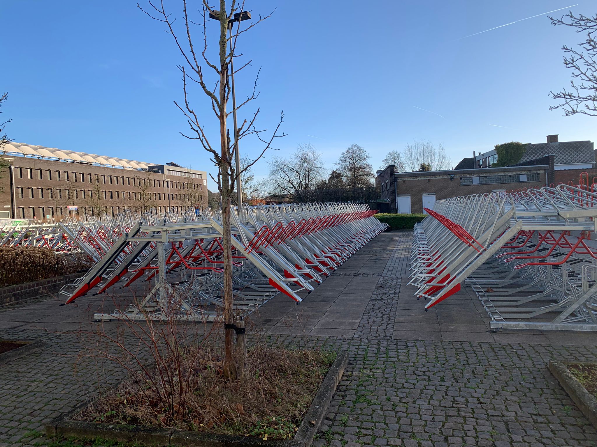 For HOGENT, the University College of Ghent, we have created a total of 580 bicycle parking spaces with our 2ParkUp system, complete with top and bottom locking brackets. This smart addition makes it easy to use an extra lock, perfect for students and employees who want to leave their bike carefree.